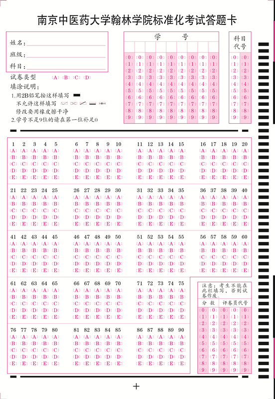 中醫藥大學翰林學院標準化考試答題卡